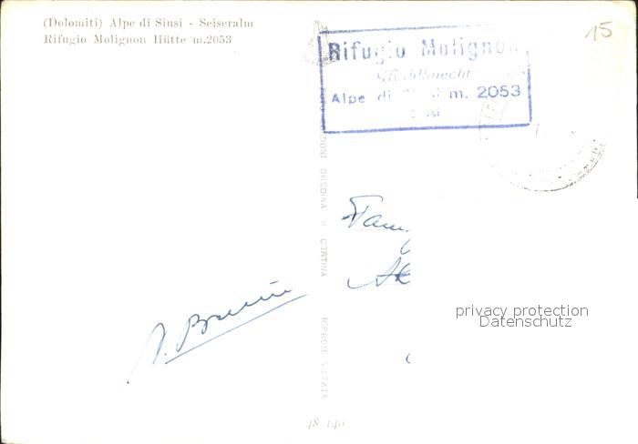 old postcard Dolomiti Seiseralm Rifugio Molignon Huette postalisch gelaufen Erhaltung siehe scans