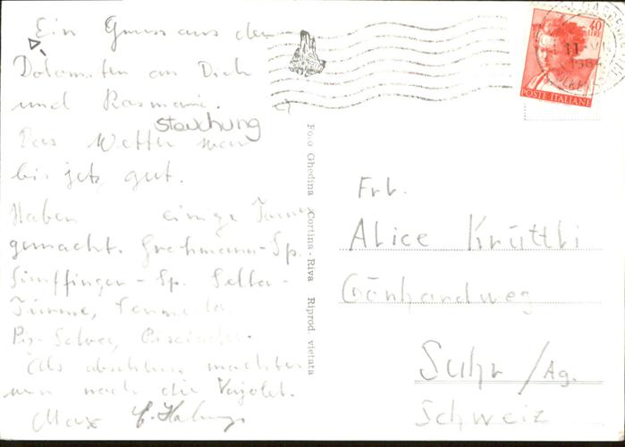 old postcard Dolomiti Torre Berger m. 2861 postalisch gelaufen