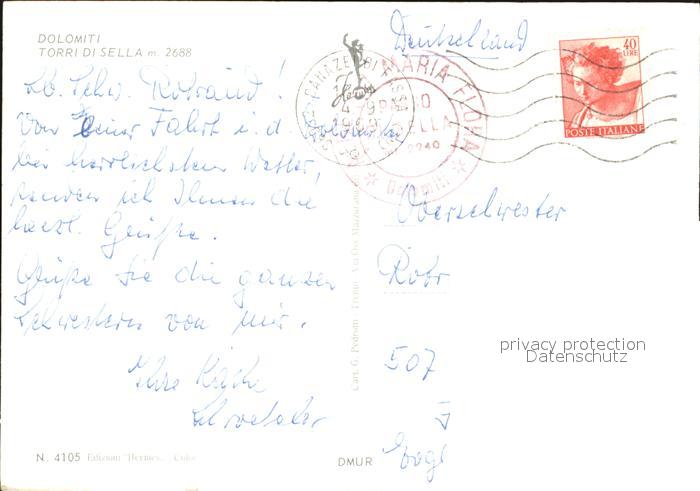 old postcard Dolomiti Torri di Sella Gebirgspanorama Dolomiten postalisch gelaufen Erhaltung siehe scans