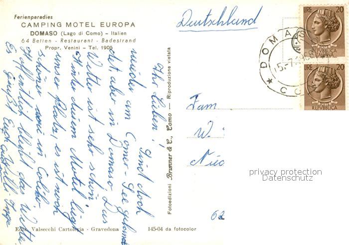 old postcard Domaso Camping Motel Europa postalisch gelaufen Erhaltung siehe scans [WerneD78]