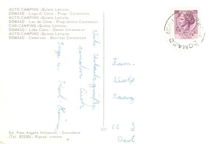 73905483 old postcard Domaso Lago di Como IT Auto Camping Quiete Letizia Details postalisch gelaufen Erhaltung siehe scans [FriedD77] KatCode: 11240
