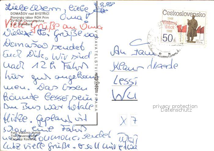 old postcard Domasov nad Bystrici Pionyrsky tabor ROH Prim ZV ROH Chronotechna postalisch gelaufen Erhaltung siehe scans