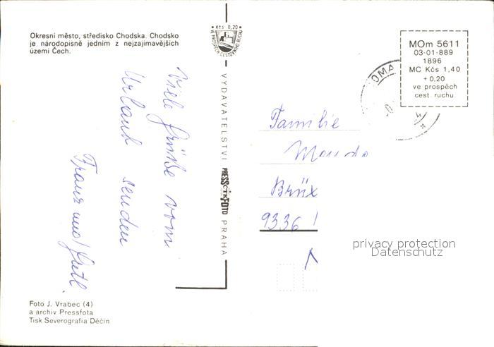 old postcard Domazlice Okresni mesto stredisko Chodska Chodsko je narodopisne jednim z nejzajimavejsich uzemi Cech postalisch gelaufen Erhaltung siehe scans