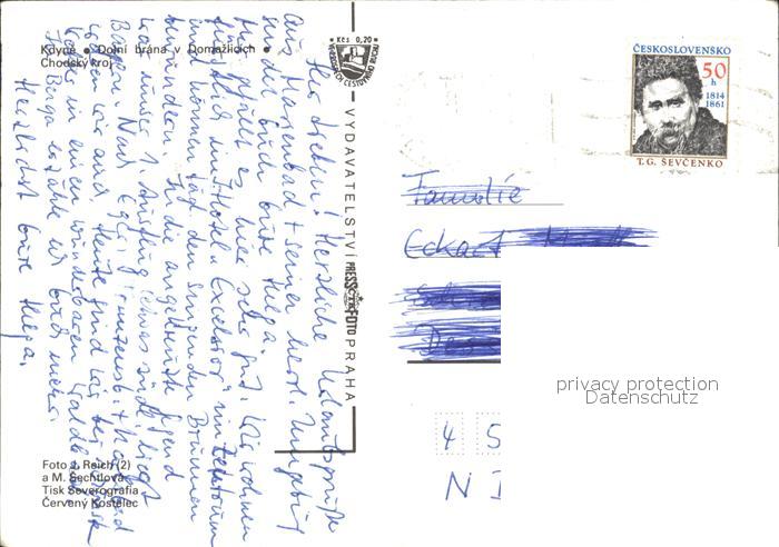 old postcard Domazlice Panorama Tor Trachten Landkarte postalisch gelaufen Erhaltung siehe scans