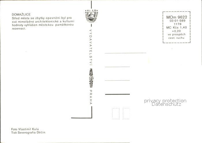 Domazlice Stred mesta se zbytk< opeveni byl pro sve mimoradne architektonicke a kulturni hodnoty vyhlasen mestkou pamatkovou rezervaci postalisch nicht gelaufen Erhaltung siehe scans