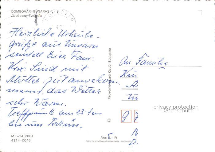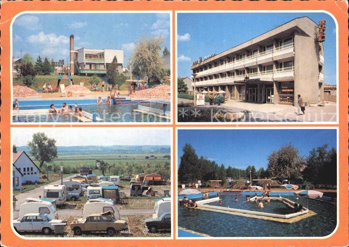 old postcard Dombovar Schwimmbad Campingplatz postalisch gelaufen Erhaltung siehe scans