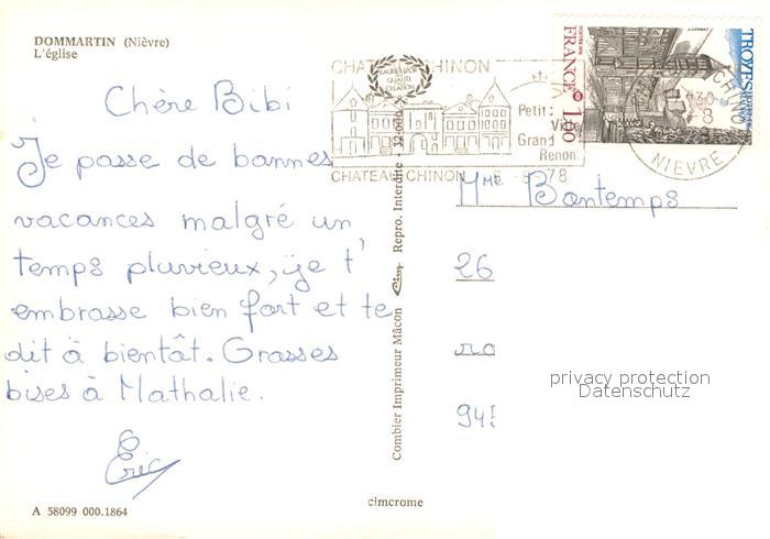 13575746 carte postale Dommartin Nievre Eglise postalisch gelaufen Erhaltung siehe scans [LiesaD40] KatCode: 11170058158099