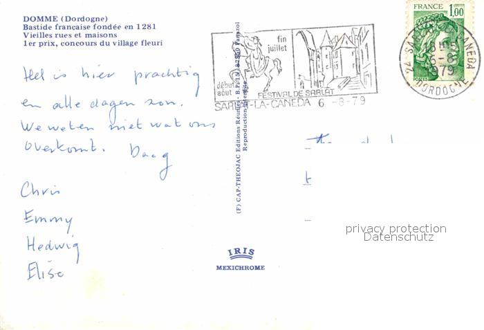 12687349 carte postale Domme Bastide francaise fondee en 1281 vieilles rues et maisons postalisch gelaufen Erhaltung siehe scans [FriedD77] KatCode: 11170024424152