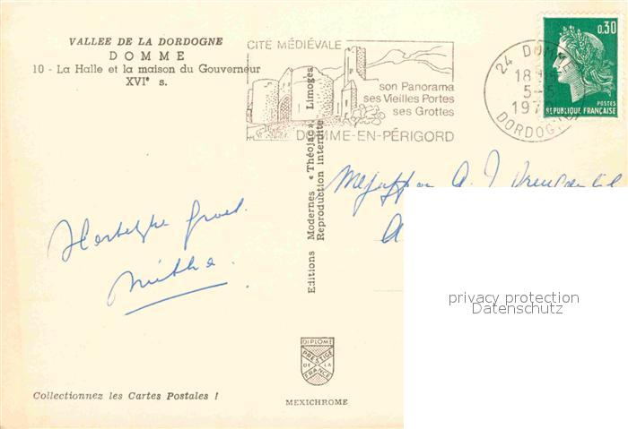 12688008 carte postale Domme La Halle et la maison du Gouverneur XVI siecle postalisch gelaufen Erhaltung siehe scans [FriedD77] KatCode: 11170024424152