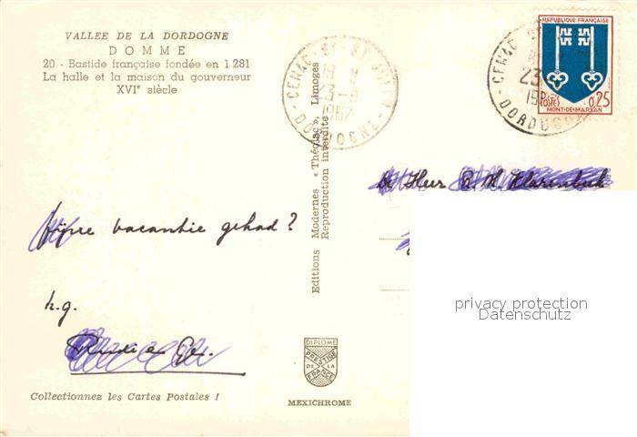 12854528 carte postale Domme La Halle et la maison du gouverneur postalisch gelaufen Erhaltung siehe scans [LiesaD40] KatCode: 11170024424152