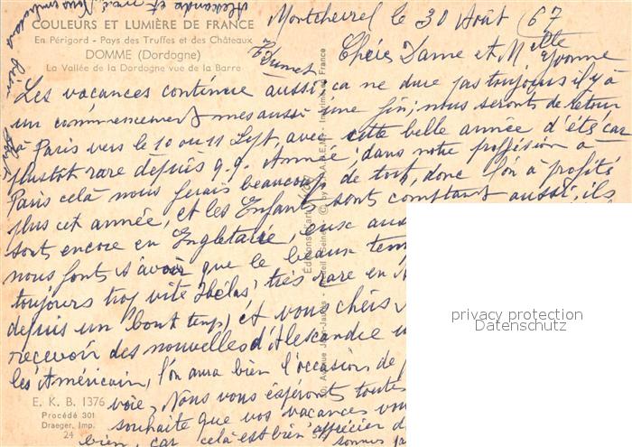 13590184 Domme La Vallee de la Dordogne vue de la Barre postalisch nicht gelaufen Erhaltung siehe scans [WerneD78] Wern Katcode 11170024424152