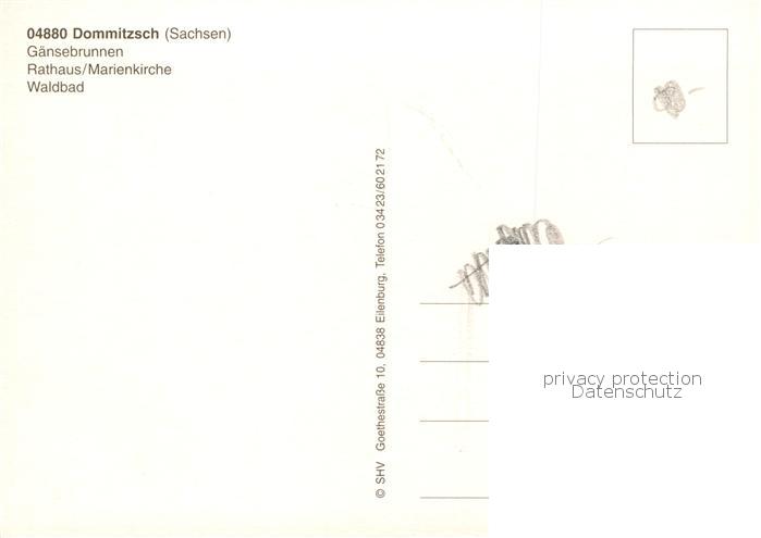 73840890 Dommitzsch Gaensebrunnen Rathaus Marienkirche Waldbad postalisch nicht gelaufen Erhaltung siehe scans [FriedD77] KatCode: 11110014389100