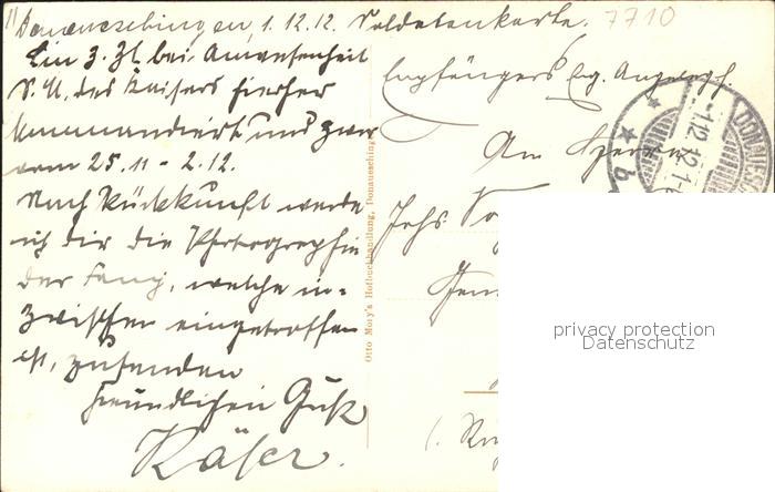 31884613 alte Postkarte Donaueschingen postalisch gelaufen Feldpost Erhaltung siehe scans KatCode: 11110008326012
