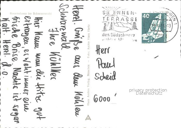 72493719 alte Postkarte Donaueschingen Bauernhaus im Schwarzwald postalisch gelaufen Erhaltung siehe scans KatCode: 11110008326012