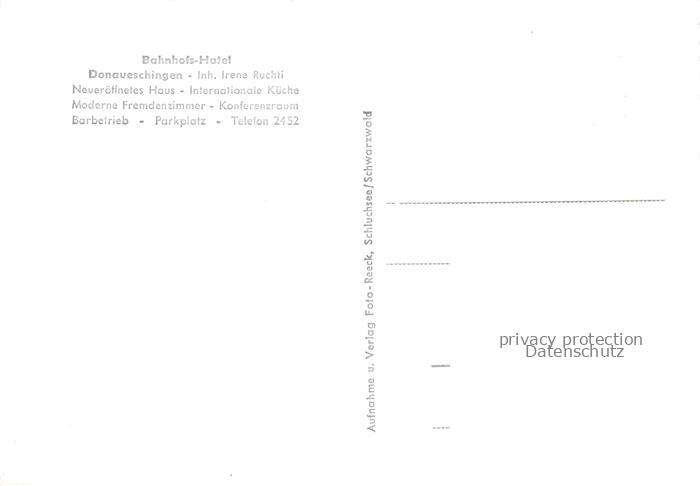 74058665 Donaueschingen BW Bahnhofs-Hotel Restaurant postalisch nicht gelaufen Erhaltung siehe scans [FriedD77] Frie Katcode 11110008326012