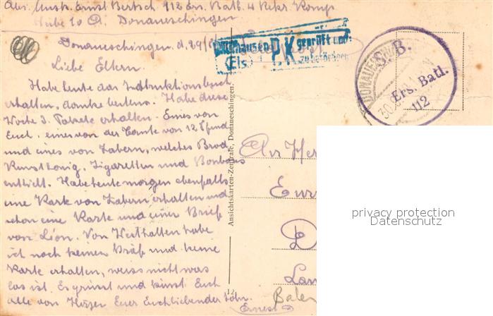 43492394 Donaueschingen BW Denkmalbrunnen postalisch gelaufen Feldpost – Stempel Erhaltung siehe scans [KathaD81] Feldpost – Stempel alte Postkarte Kath Katcode 11110008326012
