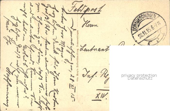 42585833 alte Postkarte Donaueschingen Donauquelle postalisch gelaufen Feldpost Erhaltung siehe scans [WerneD78] KatCode: 11110008326012