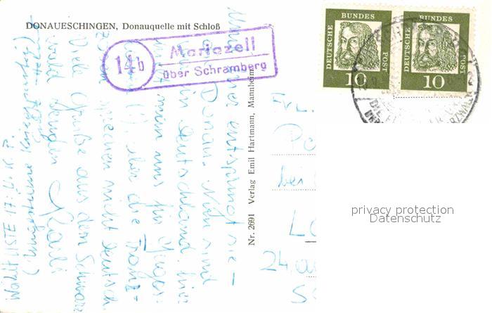 72754294 alte Postkarte Donaueschingen Donauquelle mit Schloss postalisch gelaufen Erhaltung siehe scans [FriedD77] KatCode: 11110008326012