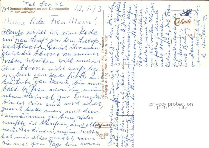 72536022 Donaueschingen Fliegeraufnahme an der Donauquelle postalisch nicht gelaufen Erhaltung siehe scans [LiesaD40 kt120box] KatCode: 11110008326012