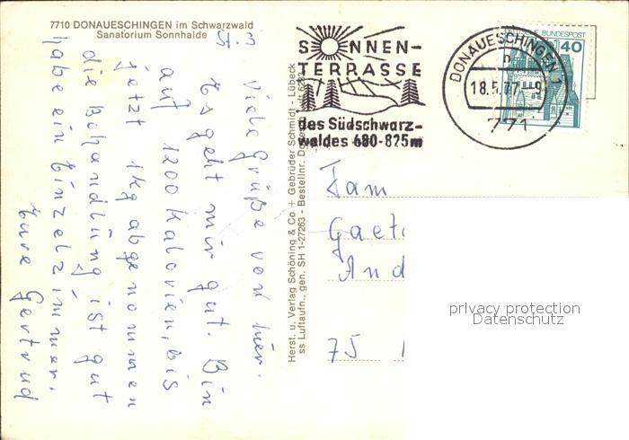 71900133 alte Postkarte Donaueschingen Fliegeraufnahme Sanatorium Sonnhalde postalisch gelaufen Erhaltung siehe scans KatCode: 11110008326012