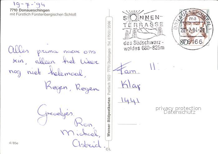 72325000 alte Postkarte Donaueschingen Fuerstlich Fuerstenbergischen Schloss postalisch gelaufen Erhaltung siehe scans KatCode: 11110008326012