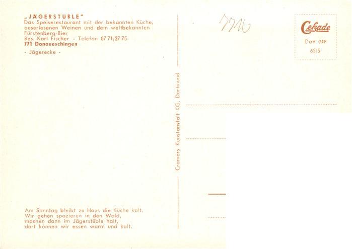 73927510 Donaueschingen Jaegerstueble Speiserestaurant postalisch nicht gelaufen Erhaltung siehe scans [FriedD77] KatCode: 11110008326012