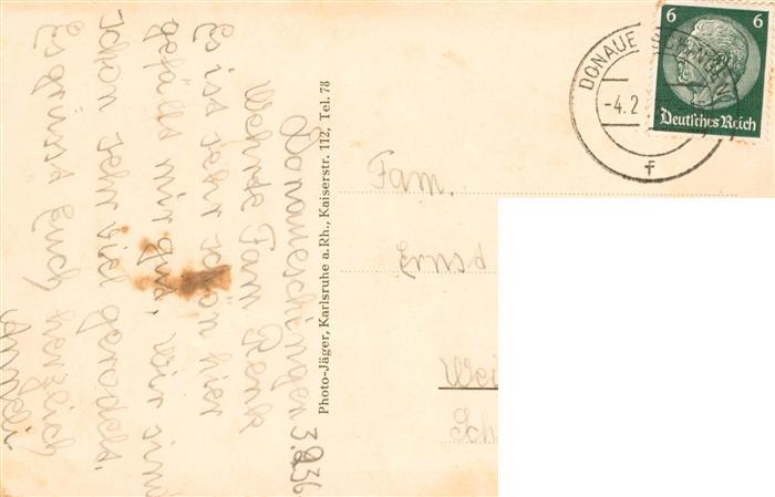 73934399 alte Postkarte Donaueschingen Karlsruher Kindersolbad postalisch gelaufen Erhaltung siehe scans [FriedD77] KatCode: 11110008326012