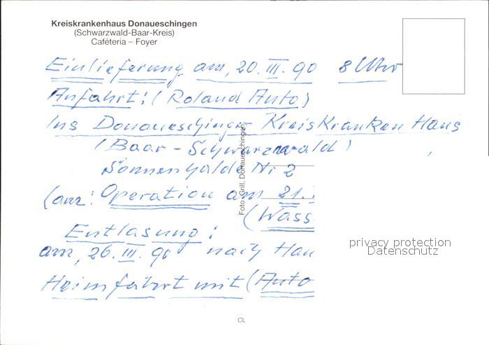72179687 Donaueschingen Kreiskrankenhaus postalisch nicht gelaufen Erhaltung siehe scans KatCode: 11110008326012