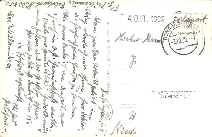 71848182 alte Postkarte Donaueschingen Leopoldsbruecke Katholische Kirche postalisch gelaufen Feldpost Erhaltung siehe scans KatCode: 11110008326012