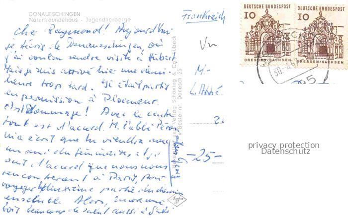 74104463 alte Postkarte Donaueschingen Naturfreundehaus Jugendherberge Fahne postalisch gelaufen Erhaltung siehe scans [FriedD77] KatCode: 11110008326012