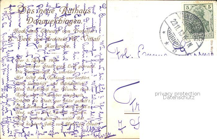 31884614 alte Postkarte Donaueschingen Neues Rathaus Professor E. Beck postalisch gelaufen Erhaltung siehe scans KatCode: 11110008326012