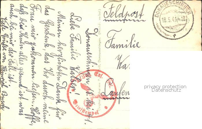 31884586 alte Postkarte Donaueschingen NZ3 postalisch gelaufen Feldpost Erhaltung siehe scans KatCode: 11110008326012