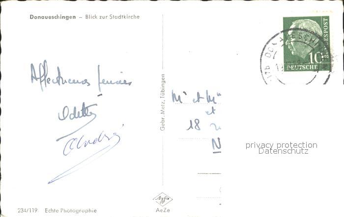 72024529 alte Postkarte Donaueschingen Partie an Stadtkirche postalisch gelaufen Erhaltung siehe scans KatCode: 11110008326012