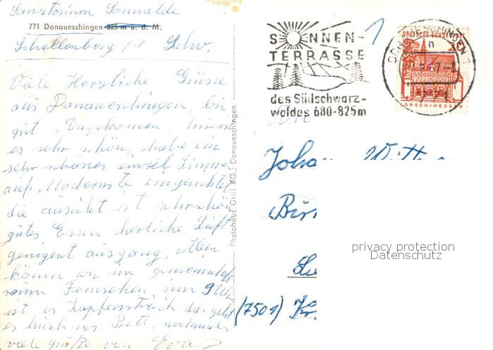 73867666 alte Postkarte Donaueschingen Sanatorium Sonnhalde Donauquelle Schlosspark postalisch gelaufen Erhaltung siehe scans [WerneD78] KatCode: 11110008326012