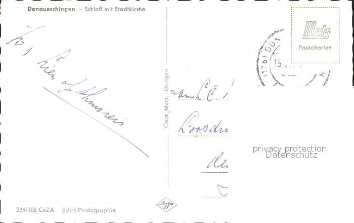 72062147 alte Postkarte Donaueschingen Schloss Stadtkirche postalisch gelaufen Erhaltung siehe scans KatCode: 11110008326012