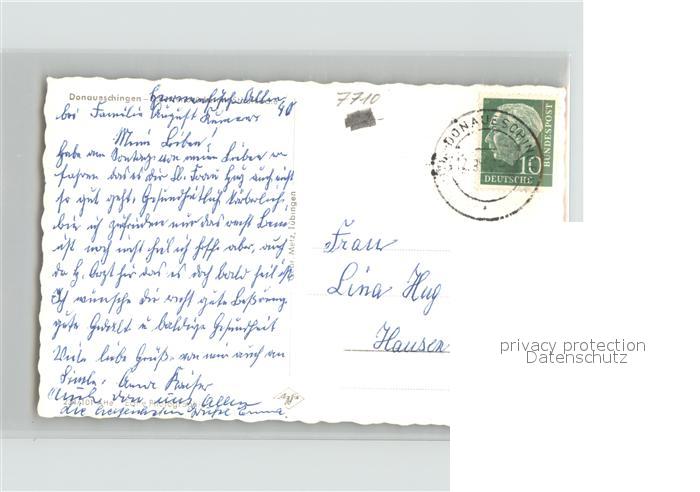 71850867 alte Postkarte Donaueschingen Schuetzenbruecke mit Stadtkirche postalisch gelaufen Erhaltung siehe scans KatCode: 11110008326012