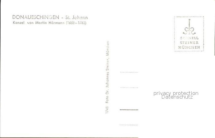 72566696 Donaueschingen St. Johann Kanzel von Martin Hoermann postalisch nicht gelaufen Erhaltung siehe scans [LiesaD40] KatCode: 11110008326012