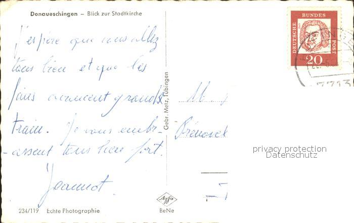 72202438 alte Postkarte Donaueschingen Stadtkirche postalisch gelaufen Erhaltung siehe scans KatCode: 11110008326012