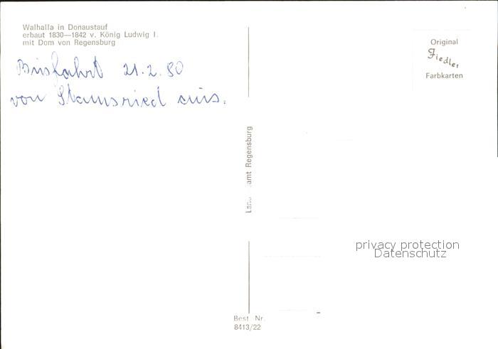72429513 Donaustauf Walhalla Koenig Ludwig I Dom Regensburg postalisch nicht gelaufen Erhaltung siehe scans KatCode: 11110009375130