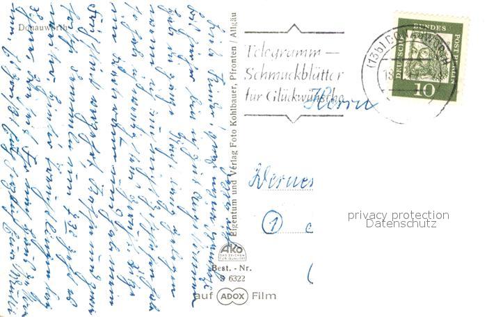 72991437 alte Postkarte Donauwoerth postalisch gelaufen Erhaltung siehe scans [LiesaD40] KatCode: 11110009779131