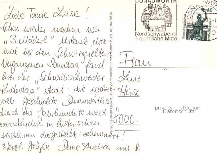 72909442 alte Postkarte Donauwoerth an der Romantischen Strasse postalisch gelaufen Erhaltung siehe scans [LiesaD40] KatCode: 11110009779131
