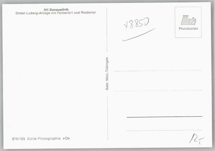 40242927 Donauwoerth Bayern nkel-Ludwig-Anlage Faerbertoerl Riedertor * postalisch nicht gelaufen Alte Ansichtskarte Postkarte Katcode 11110009779131