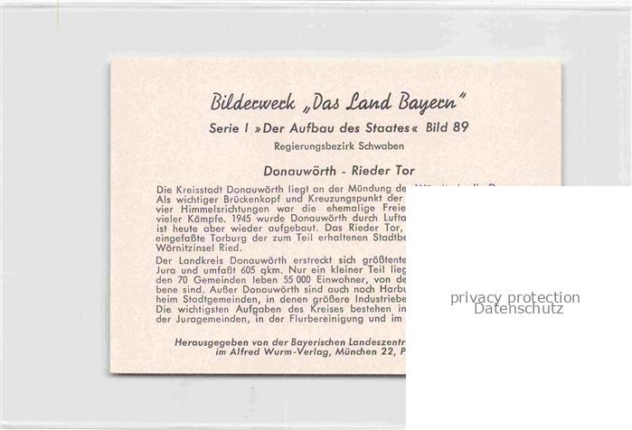 74112699 Donauwoerth Bayern Rieder Tor Sammelbild 7×10 cm postalisch nicht gelaufen Werbekarte (keine Postkarte) Erhaltung siehe scans [WerneD78] Werbekarte (keine Postkarte) Wern Katcode 11110009779131