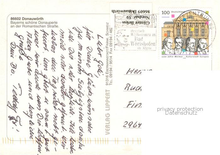 73782796 alte Postkarte Donauwoerth Donaupartie postalisch gelaufen Erhaltung siehe scans [WerneD78] KatCode: 11110009779131