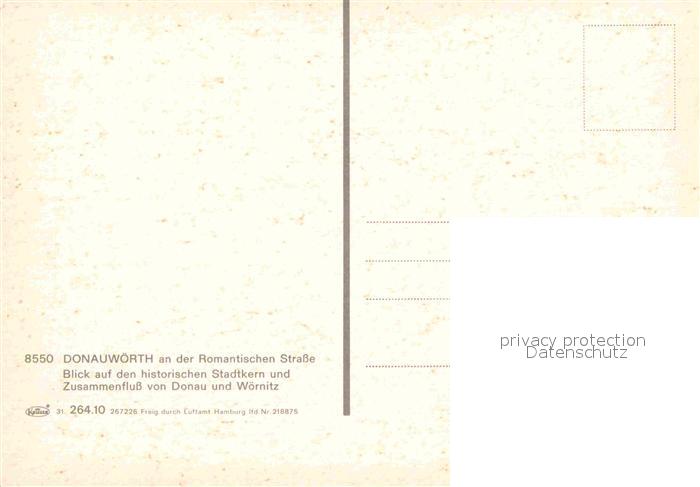 72727773 Donauwoerth Fliegeraufnahme Stadtkern und Zusammenfluss von Donau und Woernitz postalisch nicht gelaufen Erhaltung siehe scans [LiesaD40] KatCode: 11110009779131