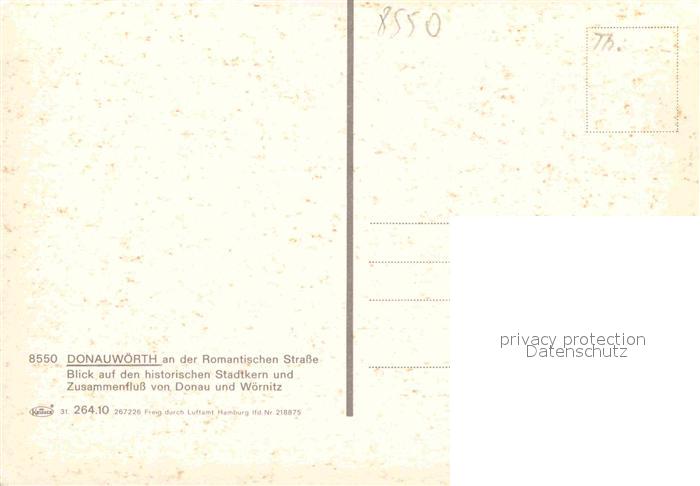 72895503 Donauwoerth Fliegeraufnahme Stadtkern Zusammenfluss von Donau und Woernitz postalisch nicht gelaufen Erhaltung siehe scans [WerneD78] KatCode: 11110009779131