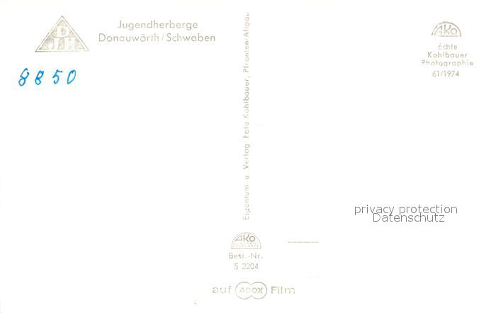 33539683 Donauwoerth Jugendherberge postalisch nicht gelaufen Erhaltung siehe scans [PaolaD17] KatCode: 11110009779131