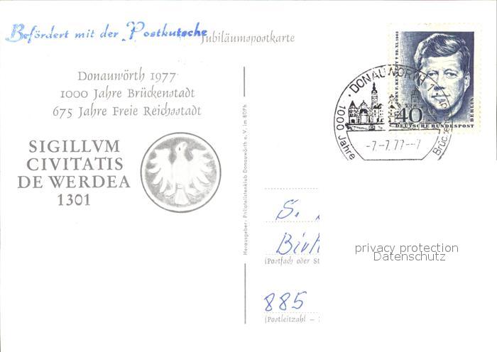 72580708 alte Postkarte Donauwoerth Luftaufnahme postalisch gelaufen Erhaltung siehe scans [KathaD79] KatCode: 11110009779131