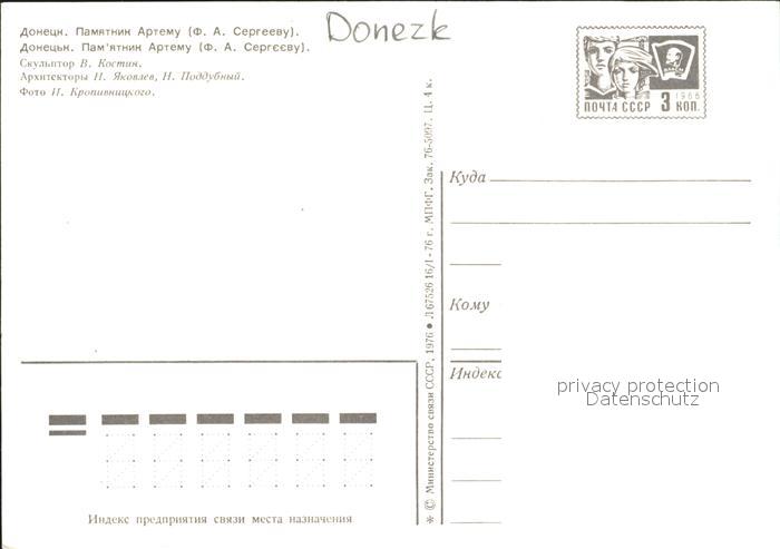 Donezk Artemdenkmal postalisch nicht gelaufen Ganzsache (eingedruckte Briefmarke) Erhaltung siehe scans