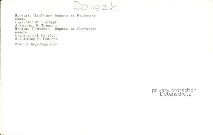 Donezk Denkmal postalisch nicht gelaufen Erhaltung siehe scans